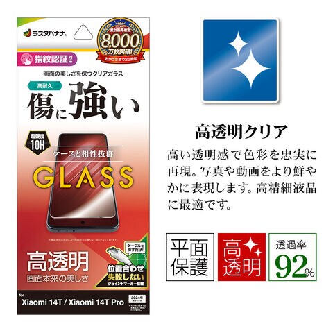 ラスタバナナ Xiaomi 14T Pro/14T(XIG06)用 ガラスフィルム 高光沢 0.33mm(クリア) GP4676XI14T 【返品種別A】