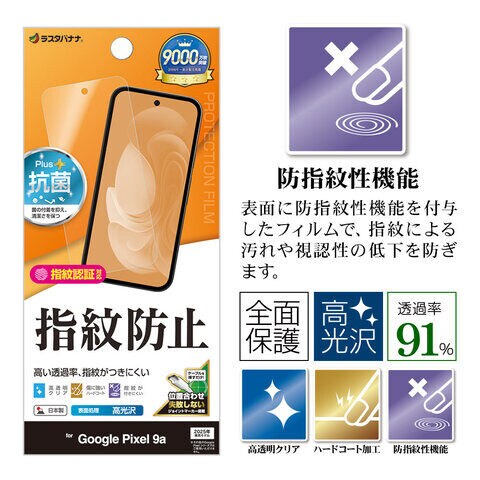 ラスタバナナ Google Pixel 9a用 光沢防指紋フィルム(クリア) G4685P9A 【返品種別A】