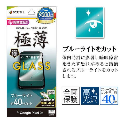 ラスタバナナ Google Pixel 9a用 ガラスフィルム ブルーライトカット 高光沢 薄型 0.2mm(クリア) GE4689P9A 【返品種別A】