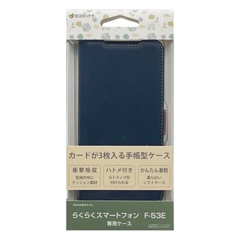 ラスタバナナ らくらくスマートフォン(F-53E)用 薄型手帳サイドマグネットケース(ネイビー×ブラウン) 8460F53EBSMNVB 【返品種別A】