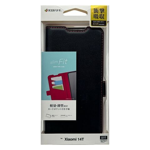 ラスタバナナ Xiaomi 14T(XIG06)用 薄型手帳サイドマグネットケース(ブラック×レッド) 8565XI14TBSMBKR 【返品種別A】