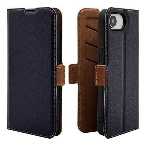ラスタバナナ iPhone 16e用 薄型手帳サイドマグネットケース 衝撃吸収(ネイビー×ブラウン) 8615IP5EBSMNVB 【返品種別A】