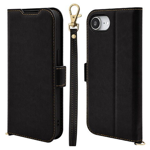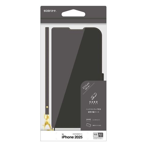 ラスタバナナ iPhone 16e用 薄型手帳型ケース+ハンドストラップ サイドマグネット(ブラック) 8616IP5EBSMHSBK 【返品種別A】