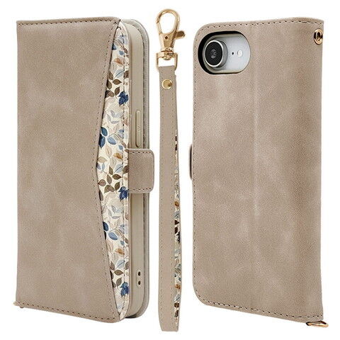 ラスタバナナ iPhone 16e用 花柄手帳型ケース(グレージュ) 8625IP5EBHSGRG 【返品種別A】