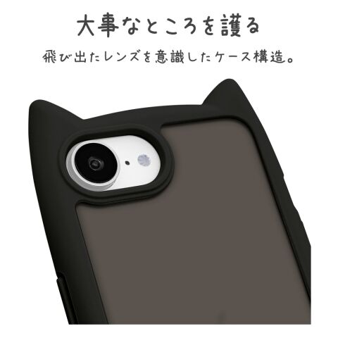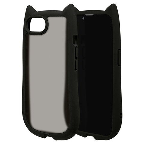 ラスタバナナ iPhone 16e用 MIMI 猫耳ハイブリッドケース TPU×PC(ブラック×フロストブラック) 8656IP5EHPBKFB 【返品種別A】