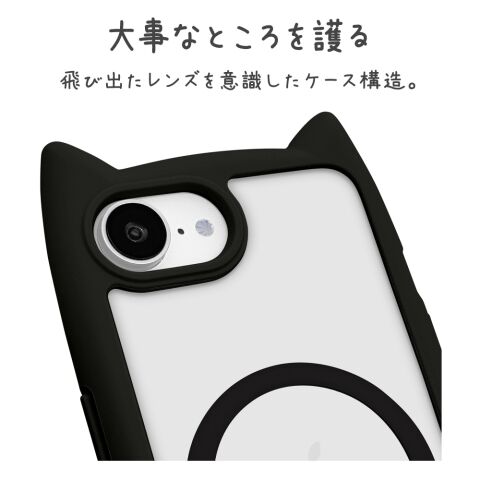 ラスタバナナ iPhone 16e用 MIMI 猫耳ハイブリッドケース TPU×PC MagSafeアクセサリ対応(ブラック) 8658IP5EHPMBK 【返品種別A】