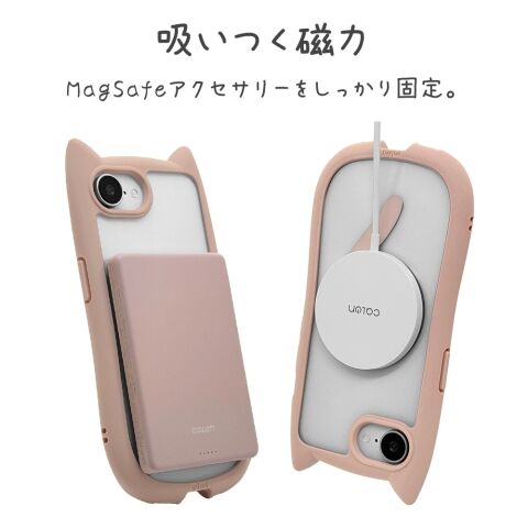 ラスタバナナ iPhone 16e用 MIMI 猫耳ハイブリッドケース TPU×PC MagSafeアクセサリ対応(スモーキーピンク) 8659IP5EHPMSPK 【返品種別A】