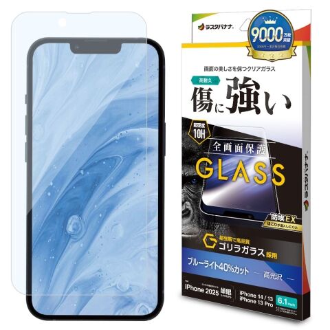 ラスタバナナ iPhone 16e/14/13/13 Pro用 ガラスフィルム ゴリラガラス ブルーライトカット 高光沢 治具無し クリア GGE4712IP5E 【返品種別A】