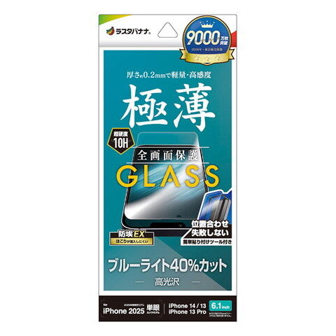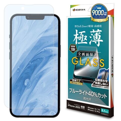 ラスタバナナ iPhone 16e/14/13/13 Pro用 ガラスフィルム ブルーライトカット 高光沢 0.2mm クリア GST4716IP5E 【返品種別A】