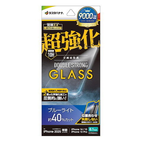 ラスタバナナ iPhone 16e/14/13/13 Pro用 ガラスフィルム 超強化 ダブルストロング ブルーライトカット 高光沢 クリア GWS4725IP5E 【返品種別A】