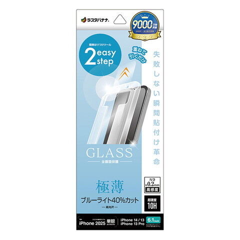 ラスタバナナ iPhone 16e/14/13/13 Pro用 ガラスフィルム 瞬間貼り付け革命 薄型 ブルーライトカット 高光沢 クリア MTK4729IP5E 【返品種別A】