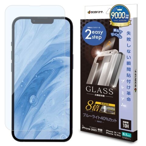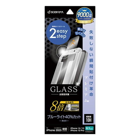 ラスタバナナ iPhone 16e/14/13/13 Pro用 ガラスフィルム 瞬間貼り付け革命プレミアム 強度8倍 ブルーライト 高光沢 クリア MTK4743IP5E 【返品種別A】