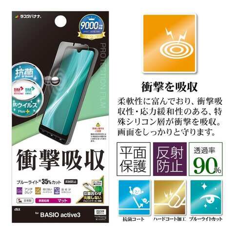 ラスタバナナ BASIO active3用 衝撃吸収フルスペック 抗菌・抗ウィルス 反射防止フィルム(クリア) VY4817BAA3 【返品種別A】