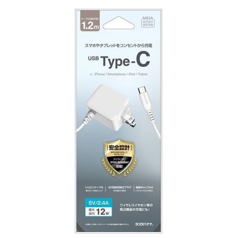 ラスタバナナ Type-C ケーブル直付 AC充電器 Mini-Breaker付 2.4A(1.2m・ホワイト) R12ACC2A04WH 【返品種別A】のレビュー