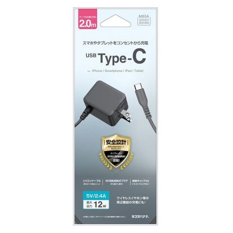 ラスタバナナ Type-C ケーブル直付 AC充電器 Mini-Breaker付 2.4A(2m・チャコールグレー) R20ACC2A04CGRY 【返品種別A】のレビュー