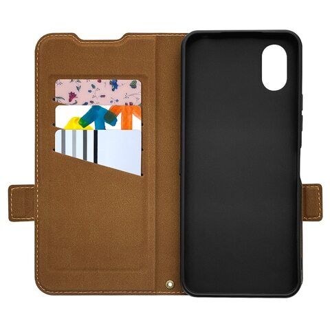 ラスタバナナ かんたんスマホ4(A402ZT)用 薄型手帳サイドマグネットケース(ネイビー×ブラウン) 8839KNTN4BSMNVB 【返品種別A】