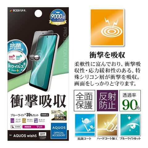 ラスタバナナ AQUOS wish5用 衝撃吸収フルスペック 反射防止フィルム クリア VY4838AW5 【返品種別A】