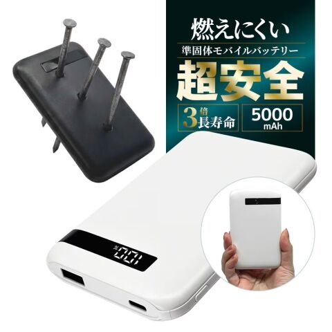 ◆繰り返し使える電池容量5000mAhの充電式準固体電池を搭載しています。