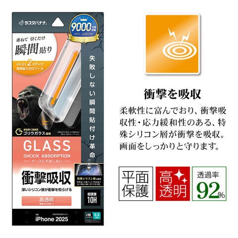 ラスタバナナ iPhone 17 貼付革命 衝撃吸収ゴリラガラス 光沢 クリア MTK4899IP5A 【返品種別A】