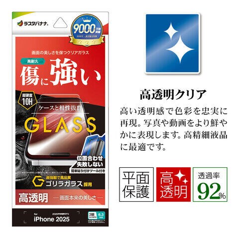ラスタバナナ iPhone 17 Pro ゴリラガラスフィルム 光沢 治具付 クリア GST4943IP5B 【返品種別A】