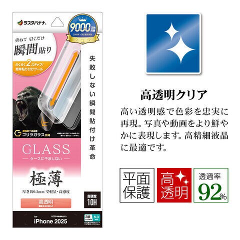 ラスタバナナ iPhone 17 Pro 貼付革命 ゴリラガラスフィルム 薄型光沢 クリア MTK4955IP5B 【返品種別A】