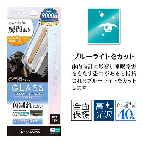 ラスタバナナ iPhone 17 Pro 貼付革命 ソフトフレーム ゴリラガラス ブルーライトカット クリア MTK4964IP5B 【返品種別A】