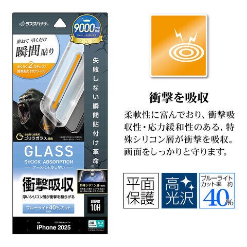 ラスタバナナ iPhone 17 Pro 貼付革命 衝撃吸収ゴリラガラス ブルーライトカット クリア MTK4968IP5B 【返品種別A】