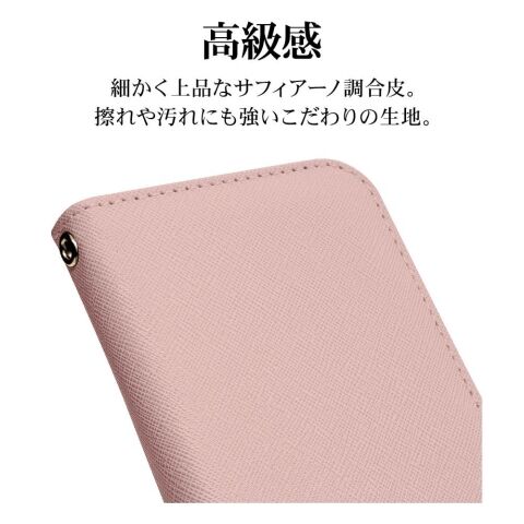 ◆液晶画面側と背面側の両面を保護できるハンドストラップ付きの手帳型ケース。