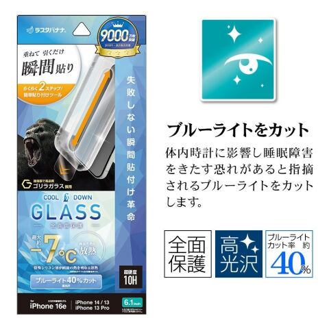 ラスタバナナ iPhone16e/14/13/13 Pro用 貼付革命 放熱ゴリラガラス BLC(クリア) MTK5086IP5E 【返品種別A】
