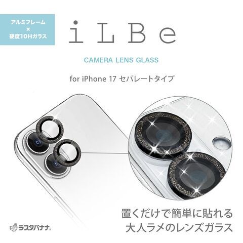 ラスタバナナ iPhone 17用 ILBE カメラレンズガラス アルミフレーム単眼(ブラックラメ) CR5136IP5A 【返品種別A】