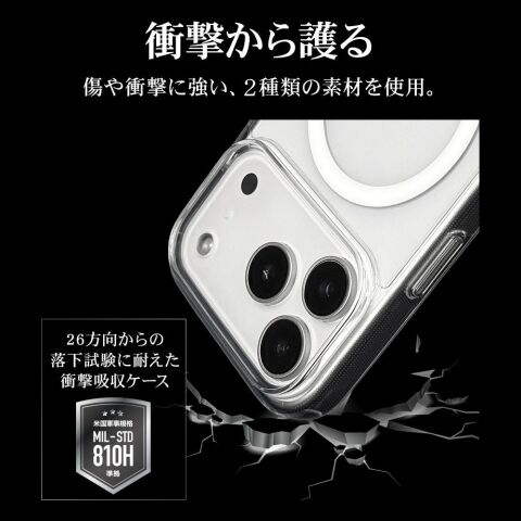 MagSafeアクセサリをケースの上から固定できるハイブリッド背面ケース。
