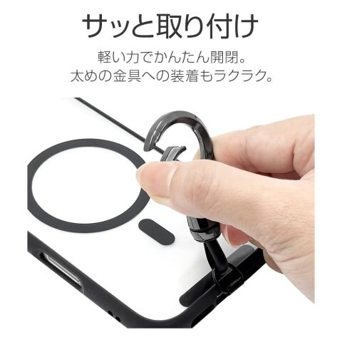 ◆カラビナフィンガーリングは、指を通すことでスマートフォンの落下を防止できます。