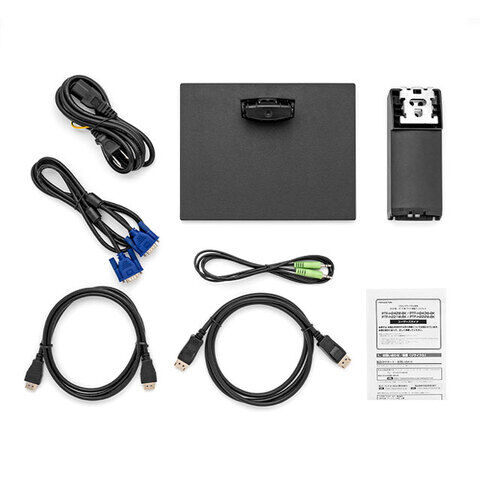 • 主な付属品 : ユーザーズガイド(製品保証書含む) x1、D-Subミニ15ピンケーブル(1.5m) x1、HDMIケーブル(1.5m) x1、DisplayPortケーブル(1.5m) x1、3.5mmステレオミニケーブル (1.5m) x1、電源ケーブル(1.8m) x1、スタンド支柱 x1、スタンド台座 x1