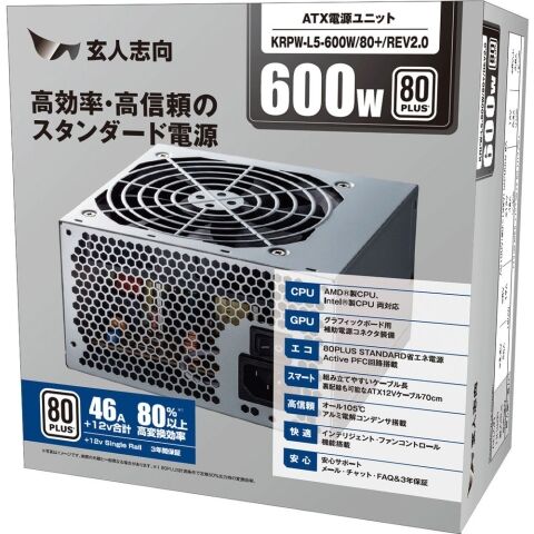 玄人志向 80PLUS STANDARD ATX電源 600W KRPW-L5 REV2.0シリーズ KRPW-L5-600W/80+/R2. 【返品種別B】