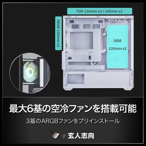 また、サイドに2基、リアに1基の120mm ARGBファンがプリインストールされており、放熱性能を高めています。