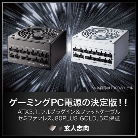 ・全モデルがATX3.1に対応し、80PLUS GOLD認証の優れた電源変換効率で、省エネかつ発熱を抑えた長寿命製品。