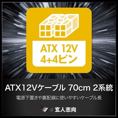 70cmのATX12Vケーブルで電源下置きや裏配線に対応