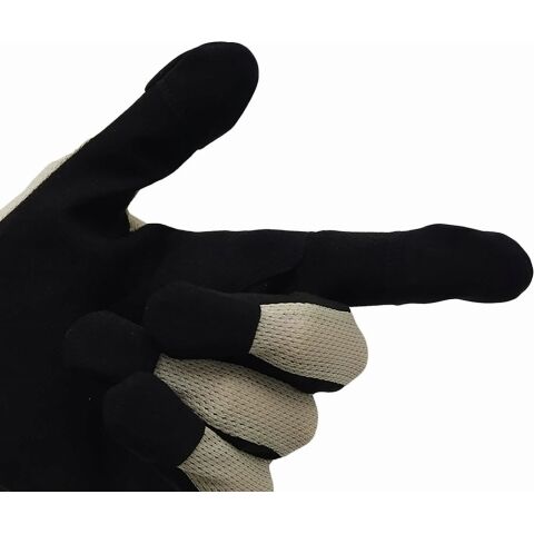 指の人工皮革の立ち上がりを高くし、傷みやすい生地の境目にストレスをあたえません。