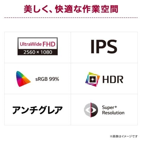 ・ 映像関連機能 : フリッカーセーフ、ブルーライト低減モード、色覚調整、Smart Energy Saving、Super Resolution+、工場出荷時キャリブレーション済