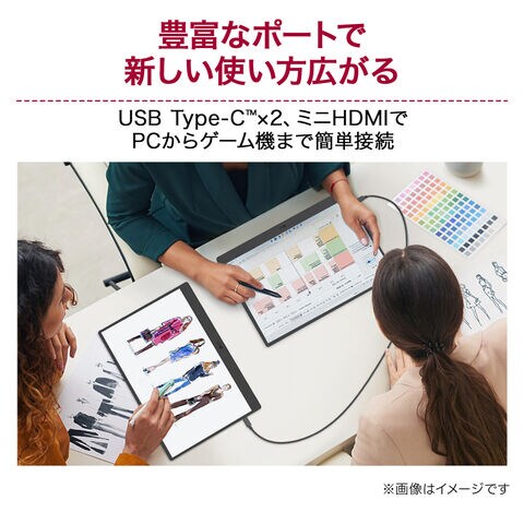 USB Type-Cポートを2基搭載し、PCやモバイルデバイスとの接続はケーブル1本ですっきりと。