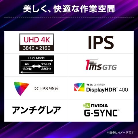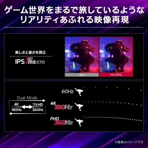 ◆4Kで180Hz、フルHDで360Hzの2モード切替 【VESA Dual Mode】