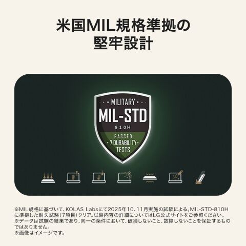 米国MIL規格の厳格な耐久テストを7項目クリア²。