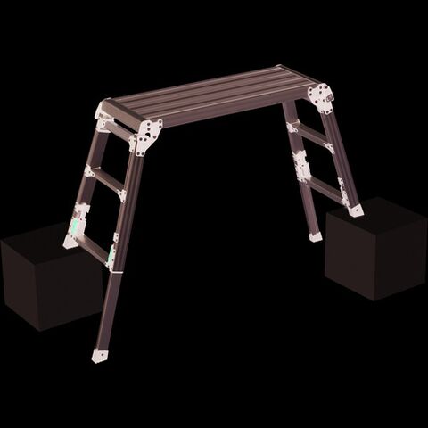 ◆立ったまま伸縮できる上部操作式4脚アジャスト式足場台です。