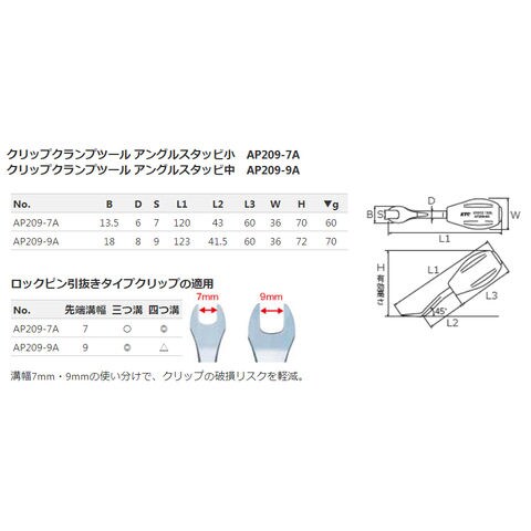 ◆先端溝幅7mmのAP209-7Aと、9mmのAP209-9Aのセットです。
