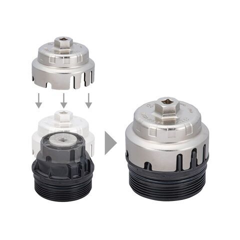 ◆トヨタ車に採用されているアルミ製及び樹脂製ろ紙交換タイプのオイルフィルタキャップの取付け・取外し専用工具。