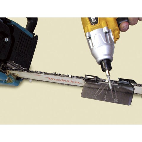 ◆別売りのチェーンソーヤスリビットをインパクトドリル、電気ドリル等に取付けて、どこでも簡単、正確にチェーンソーの目立てができます。