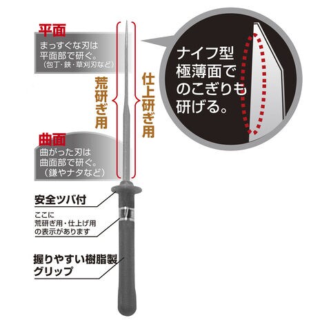◆先端のナイフ型極薄面でのこぎりも研げる。