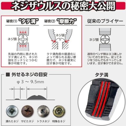 ◆潰れたねじ、錆びたねじを掴んで回せるペンチです。