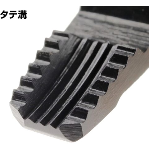 ◆先端のヨコ溝は噛み合うように配置されており、極薄板も確実に掴めます。