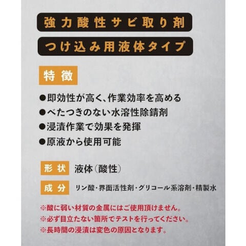◆浸漬タイプのサビ取り剤です。